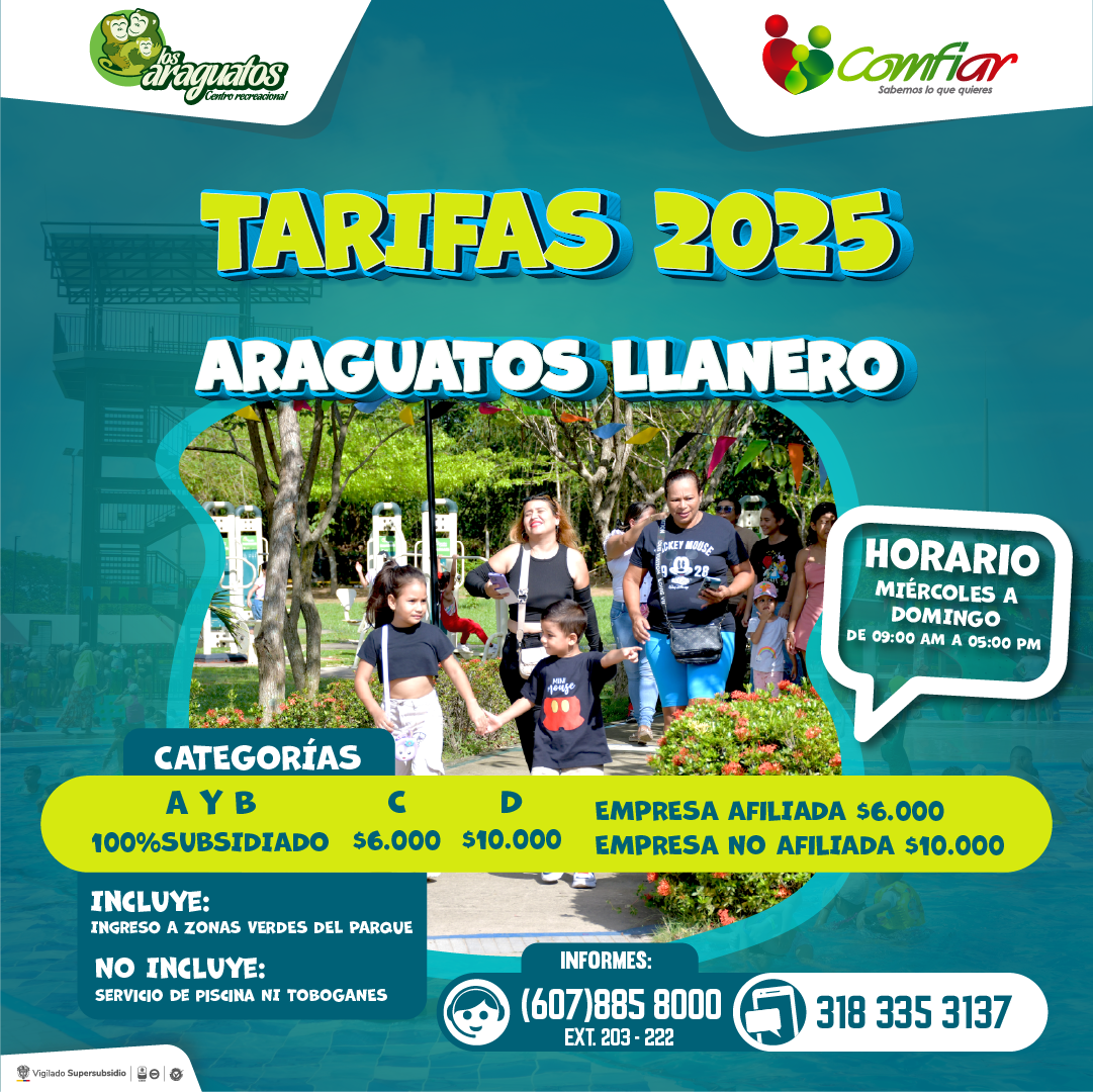 Los Araguatos Centro Recreacional es un destino de la Caja de Compensación Familiar Comfiar, el cual está ubicado a tan sólo cinco minutos del centro de la capital araucana, siendo éste un macro proyecto que entró en funcionamiento desde el 20 de enero del 2015.
