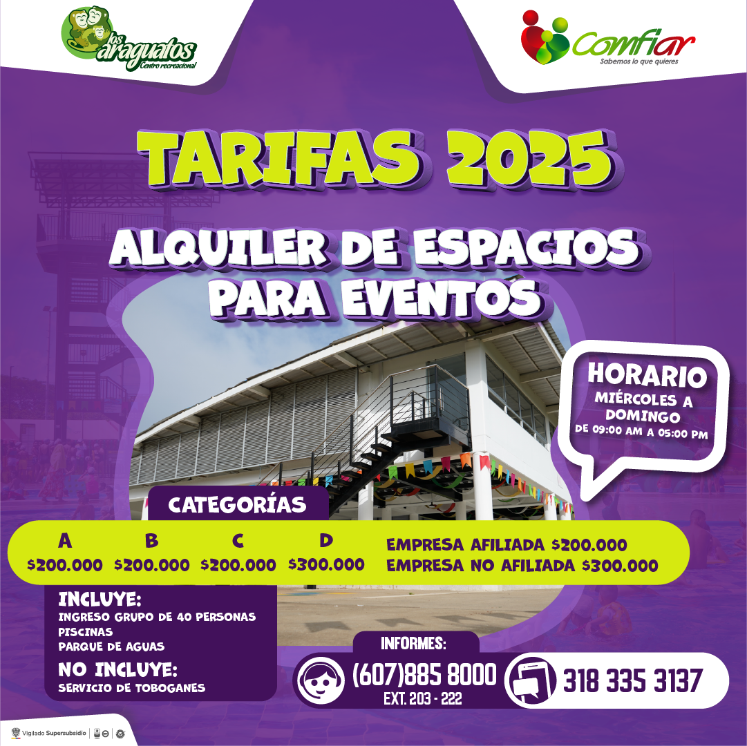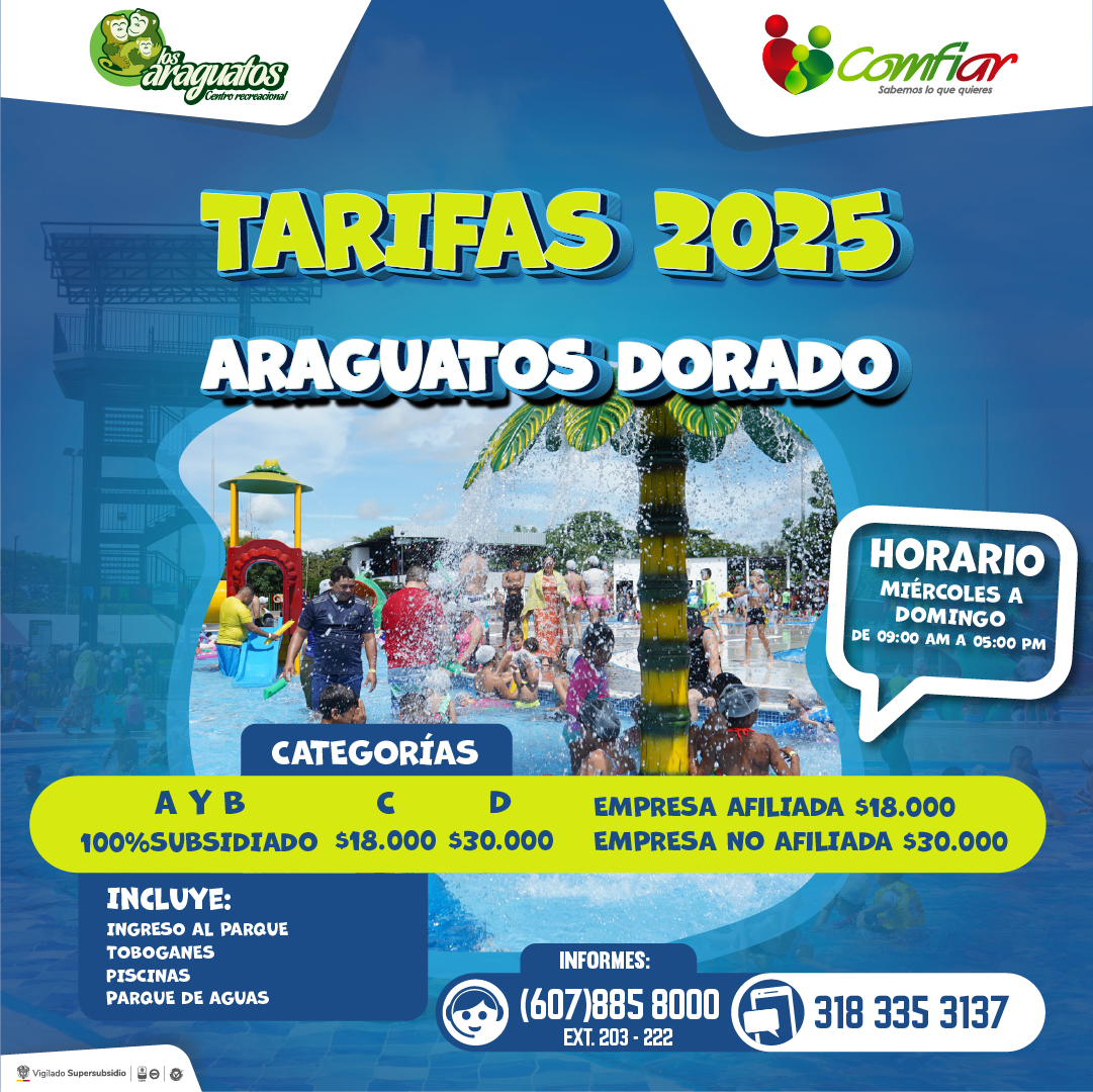 - De miércoles a viernes varia el tiempo de servicio de toboganes, dependiendo de la cantidad de visitantes en el Paque de Aguas.