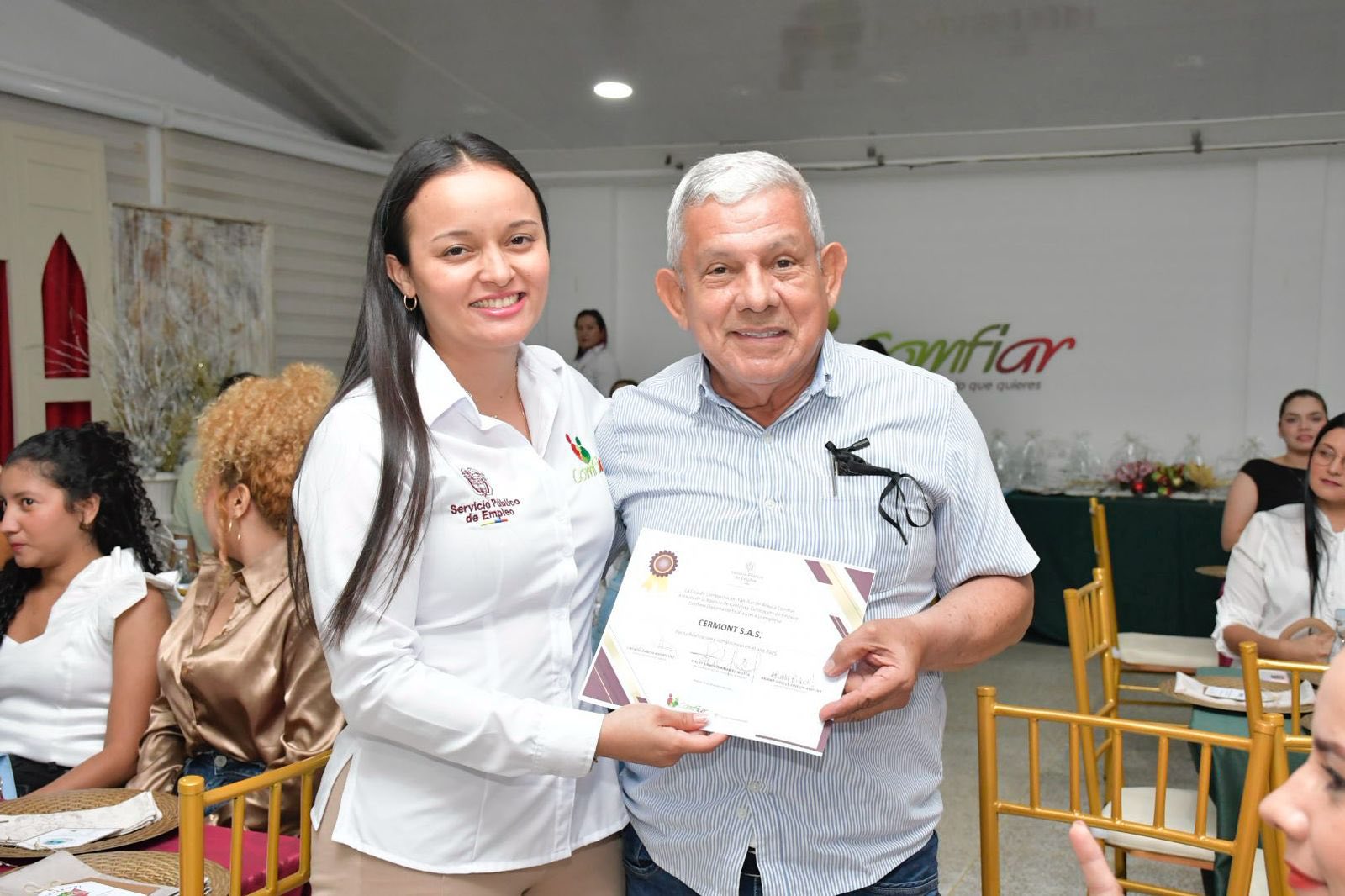 Asimismo se realizó la entrega de reconocimientos y diplomas en diferentes ítem al acceder constantemente a los servicios y beneficios de la Agencia de Empleo Comfiar, en la generación de empleo digno en el territorio.